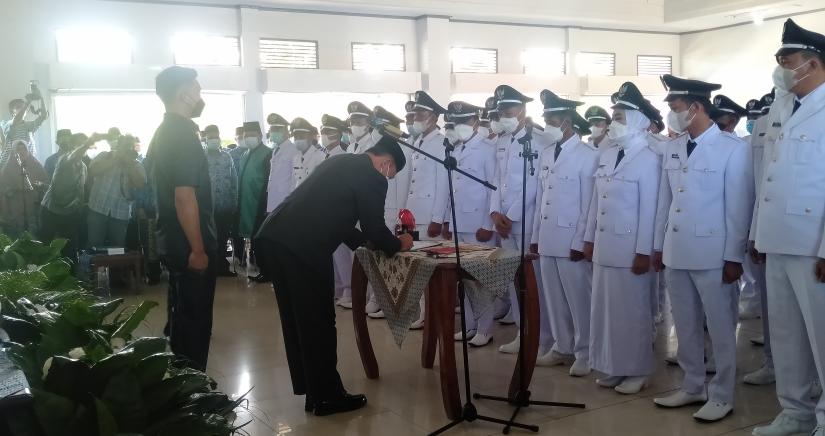 "Dengan tidak mengurangi prosesi pelantikan, tetap kami selenggarakan sesuai protokol kesehatan ketat. 66 kepala desa ," kata Lismidianto saat memimpin proses pelantikan, Senin. (17/01/2022).