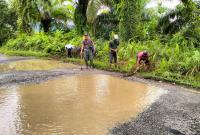 Jalan Muara Sahung Seperti Genangan Air Kolam, Kades Harapkan Perbaikan.