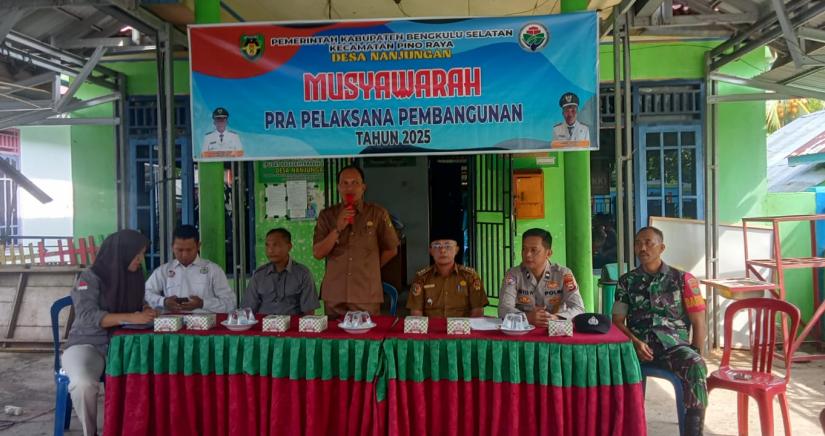 Bengkulu Selatan, BINTUHAN.ID- Pemerintah Desa Nanjungan, Kecamatan Pino Raya, Kabupaten Bengkulu Selatan, memulai langkah baru dalam meningkatkan kualitas pendidikan dan layanan masyarakat dengan pembangunan Gedung Perpustakaan. Musyawarah pra pelaksanaan proyek ini digelar di Kantor Desa Nanjungan pada Senin (13/10/2025).