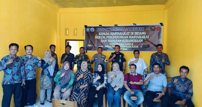 Kaur, BINTUHAN.ID – Pemerintah Desa Gedung Sako II Kecamatan Kaur Selatan Kabupaten Kaur menggelar kegiatan Pelatihan/Sosialisasi kepada masyarakat di bidang Hukum, Perlindungan Masyarakat dan Wawasan Kebangsaan, Selasa (8/10/2025). Kegiatan ini dilaksanakan di Balai Desa Gedung Sako II dan dihadiri oleh berbagai unsur Forkopimda serta masyarakat setempat.